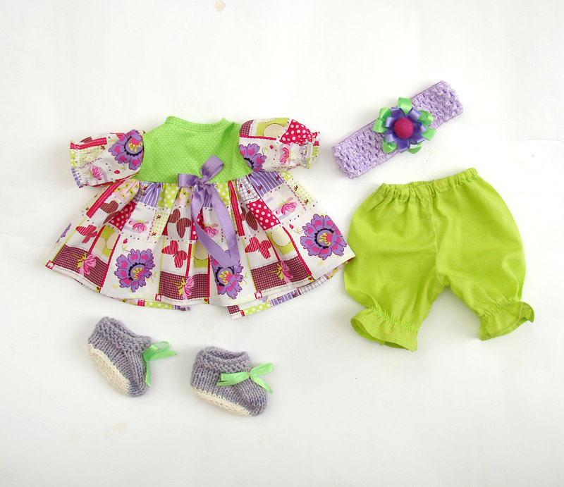 you get 1. floral cute cotton dress 2. Headband is elastic. fit for doll and girls with flower from satin ribbon. 3. knitted socks This is a very cute outfit and perfect for any weather!!